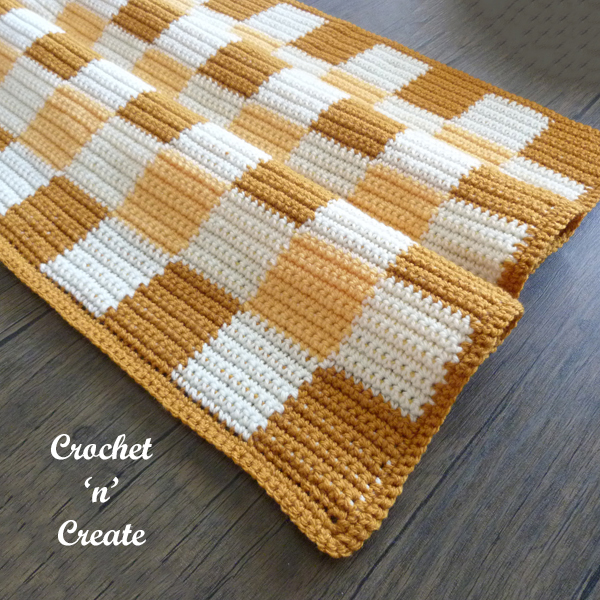 Crochet gingham baby blanket, Summer has arrived and so has my first gingham blanket pattern. This beautiful free baby blanket design was made for a friends baby, the gorgeous warm golden color shades were chosen by Mom and bring out the lovely shades of the sun.