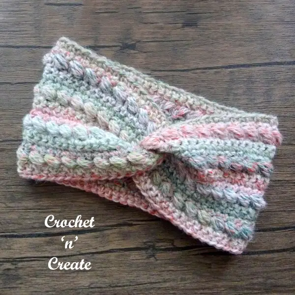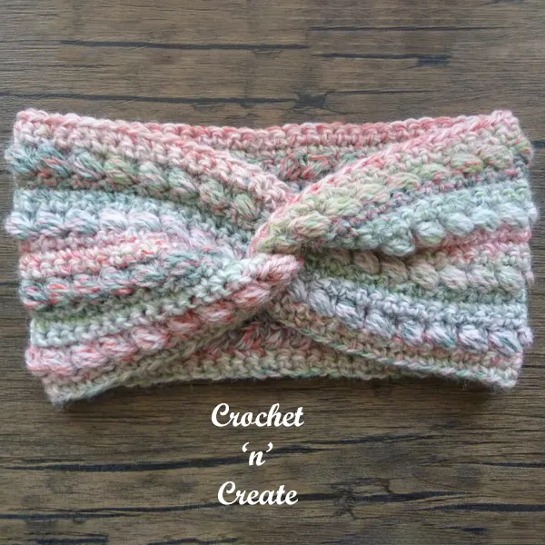 Crochet twist adult headband, how to crochet instructions for a cosy headband with a twist using a puff stitch pattern, it will also keep your ears warm too!